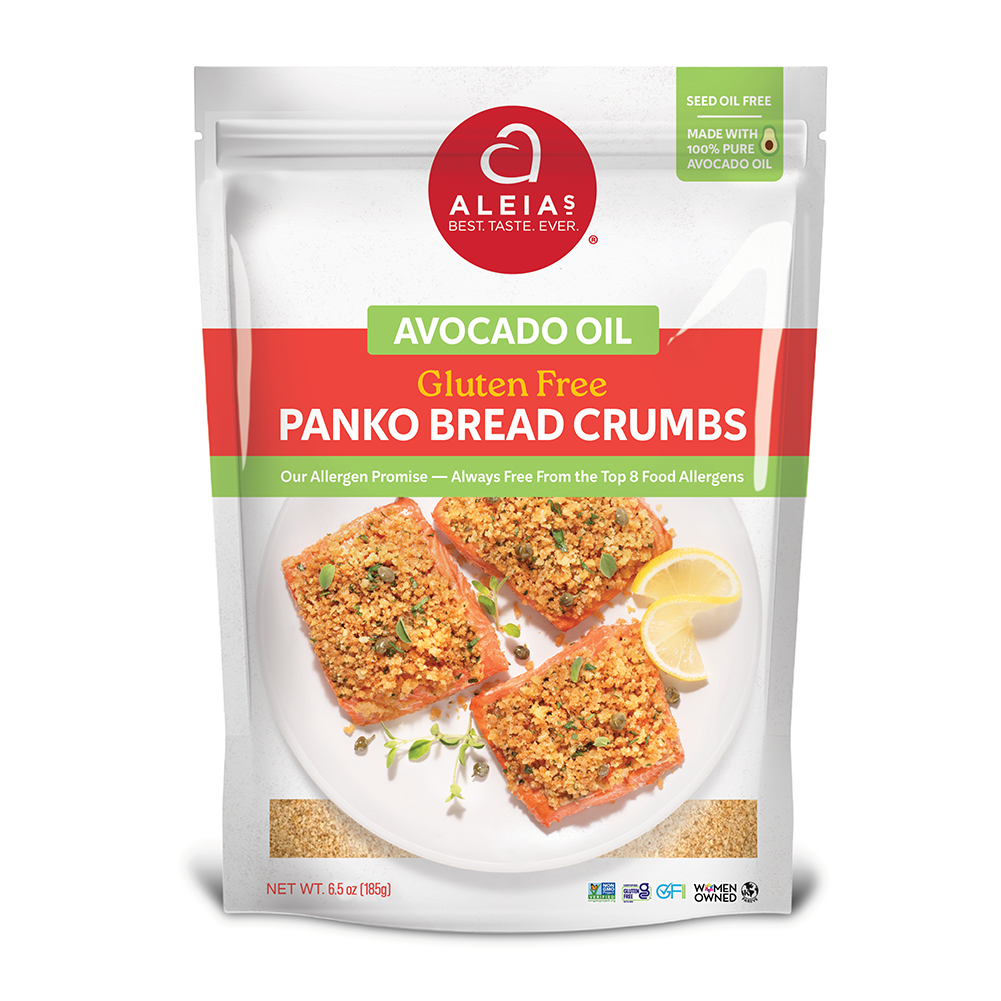Aleia’s Gluten-Free Avocado Oil Panko Breadcrumbs are crisp, airy, and irresistible – made with Avocado Oil for a delicious coating. This Pantry Staple is a Must-Have!